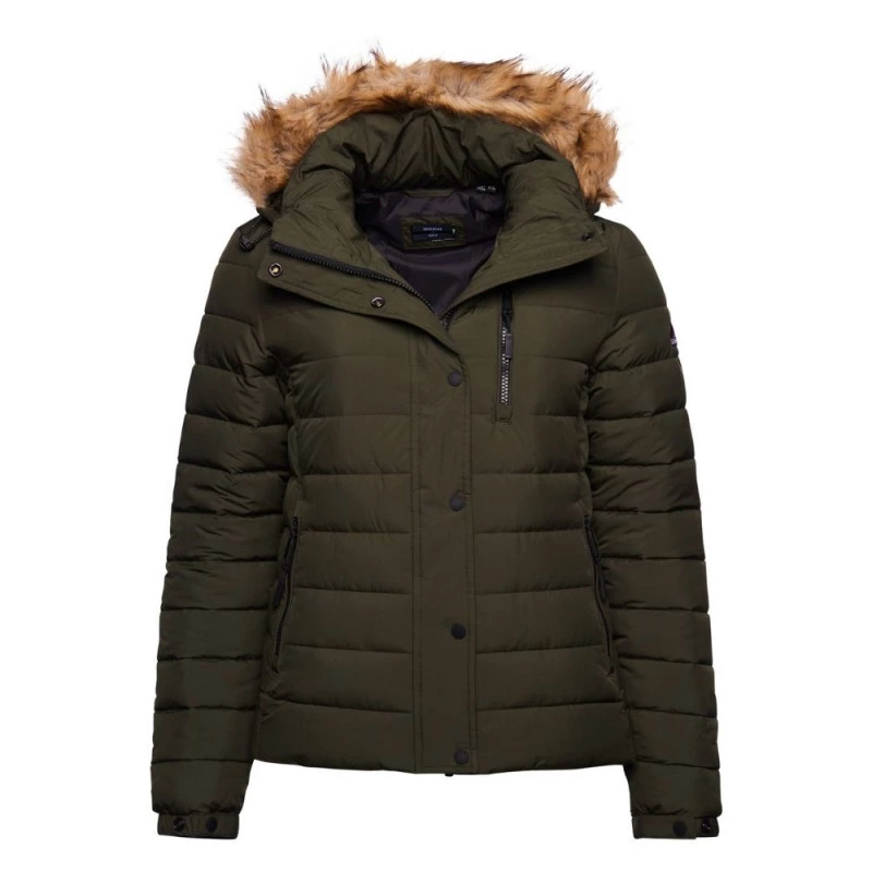 Conciliant à la fois coupe féminine et style sportswear, la doudoune CLASSIC FAUX FUR FUJI JACKET FOREST GREEN de la marque SUPERDRY a de quoi vous faire craquer. Très agréable à porter, elle créé un bouclier contre le froid et l’humidité pour affronter les hivers, même les plus rudes. Enfin, elle est conçue à partir de bouteilles recyclées afin de proposer un modèle éco-responsable plus respectueux de l’environnement.