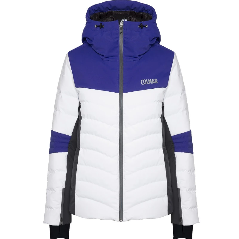 La veste de ski en duvet naturel 9RT COURCHEVEL 1850 WHITE / COSMO / ECLIPSE de la marque COLMAR est une veste technique, cintrée, ultra-confortable et chaude, idéalement conçue pour la pratique des sports d’hiver.
