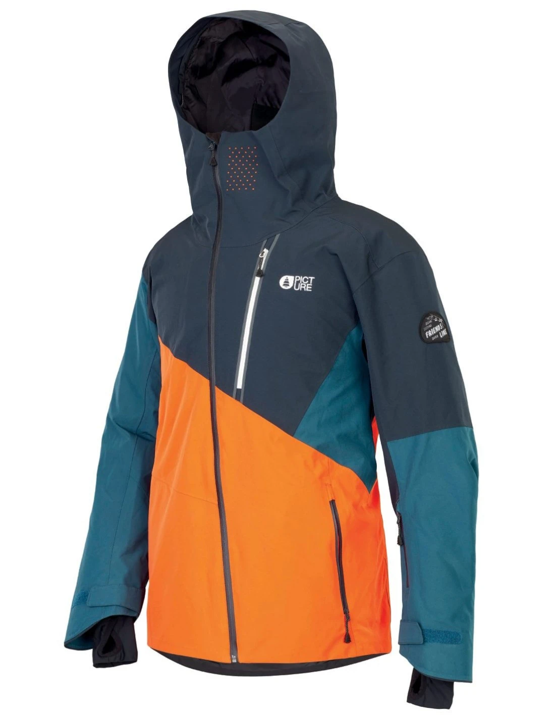 Gamme emblématique de la marque, la gamme FRIENDS reprend le code couleur qui a fait la renommée de la marque. La veste de ski ALPIN JACKET ORANGE DARK BLUE de la marque PICTURE ORGANIC s’inscrit dans la continuité de cet esprit, avec son légendaire tissu bicolore.